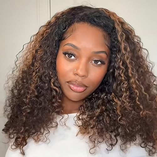 Material: Unprocessed Human Hair, Cap: Drawstring Glueless, Style: Kinky Curly, Color: #2/30 Highlight Brown